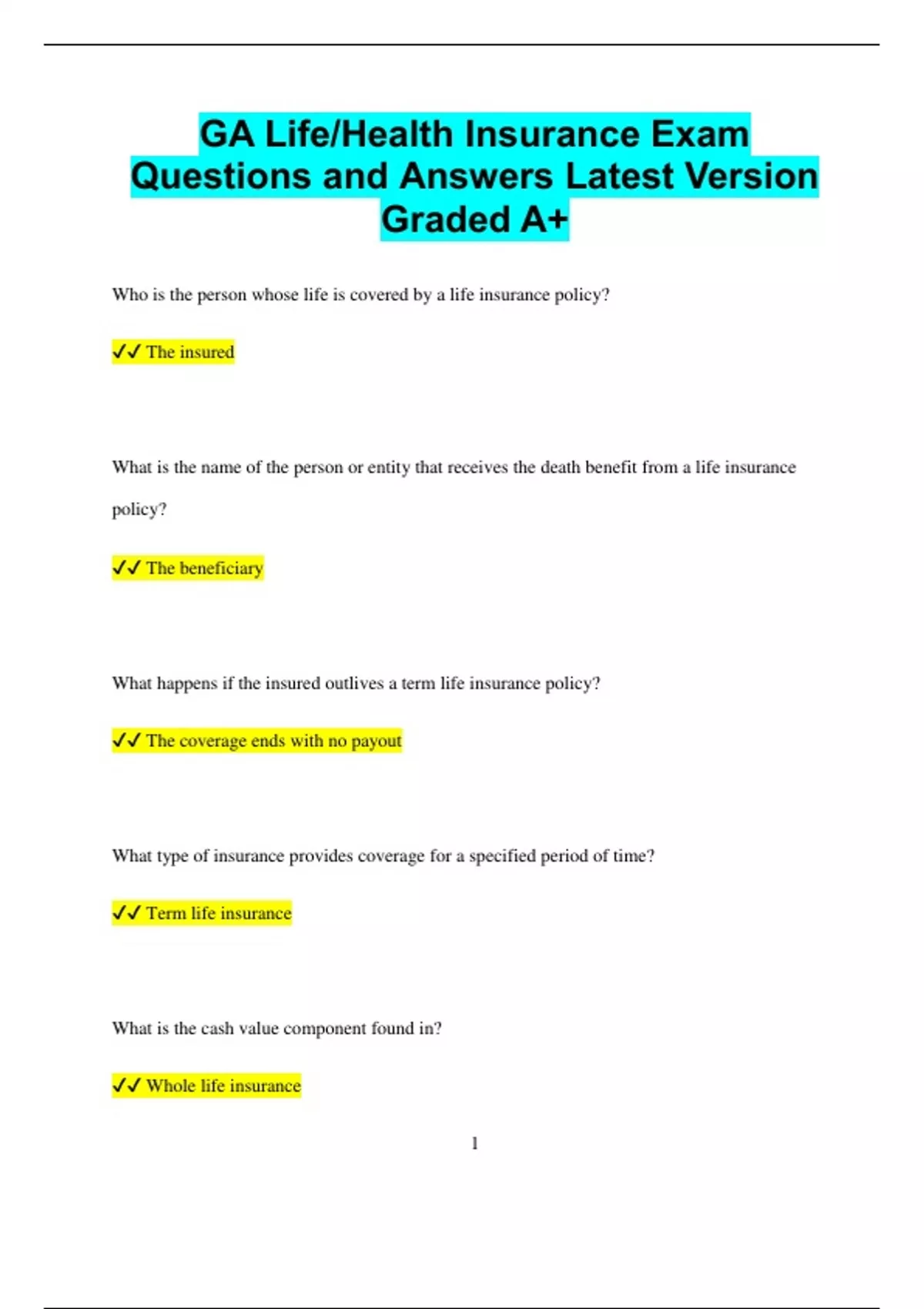 ✔✔ Whole life insurance