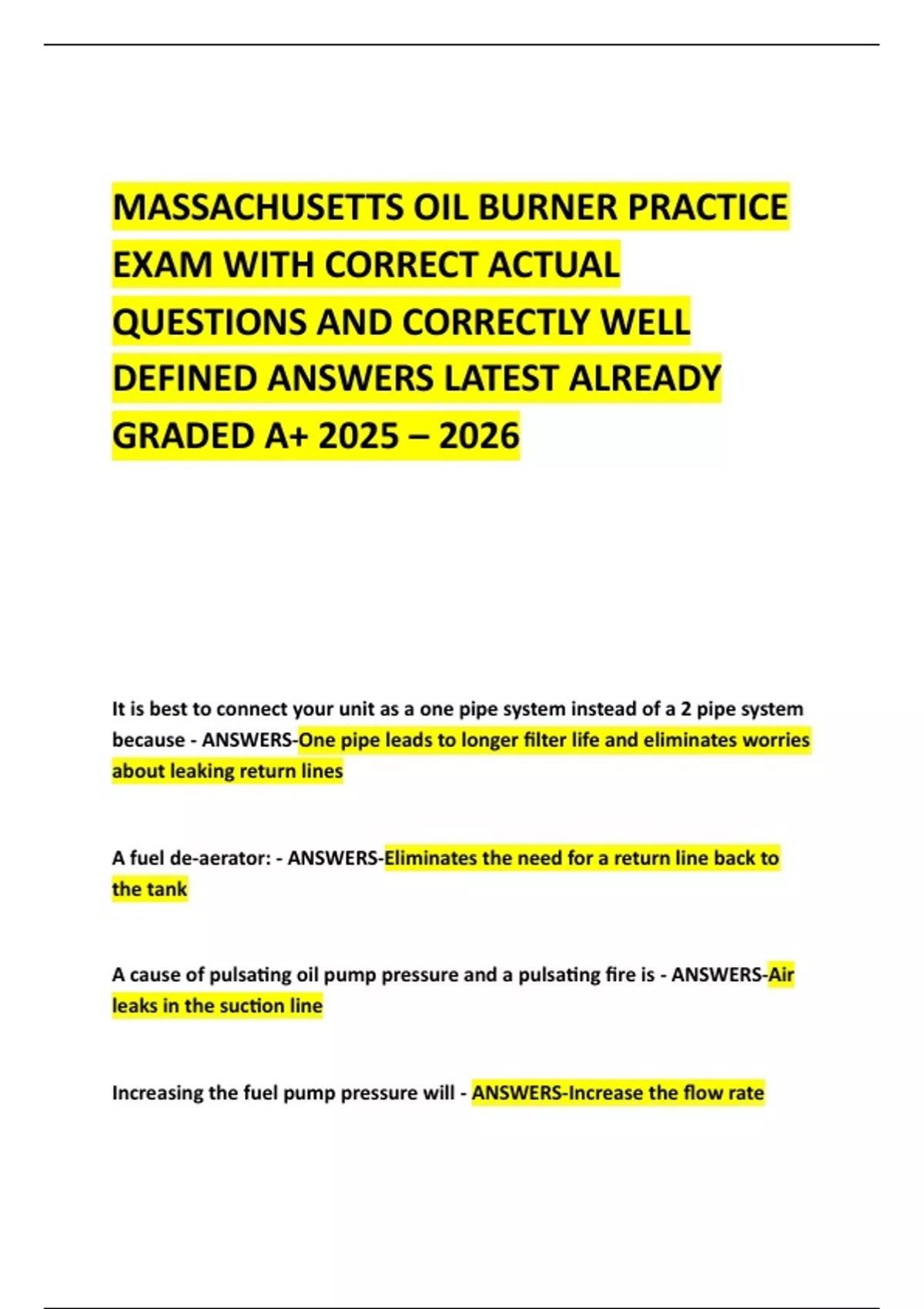 MASSACHUSETTS OIL BURNER PRACTICE EXAM WITH CORRECT ACTUAL QUESTIONS AND CORRECTLY WELL DEFINED ANSWERS LATEST ALREADY GRADED A+ 2025 – 2026