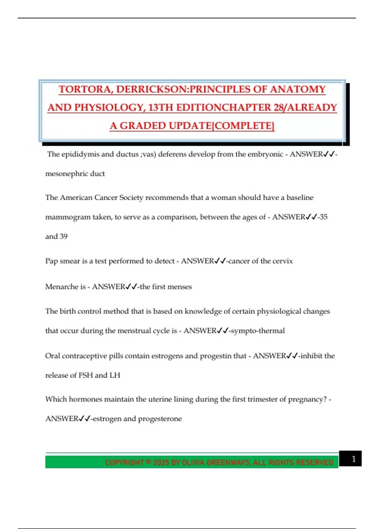 TORTORA, DERRICKSON:PRINCIPLES OF ANATOMY AND PHYSIOLOGY, 13TH EDITIONCHAPTER 28/ALREADY A GRADED UPDATE{COMPLETE}