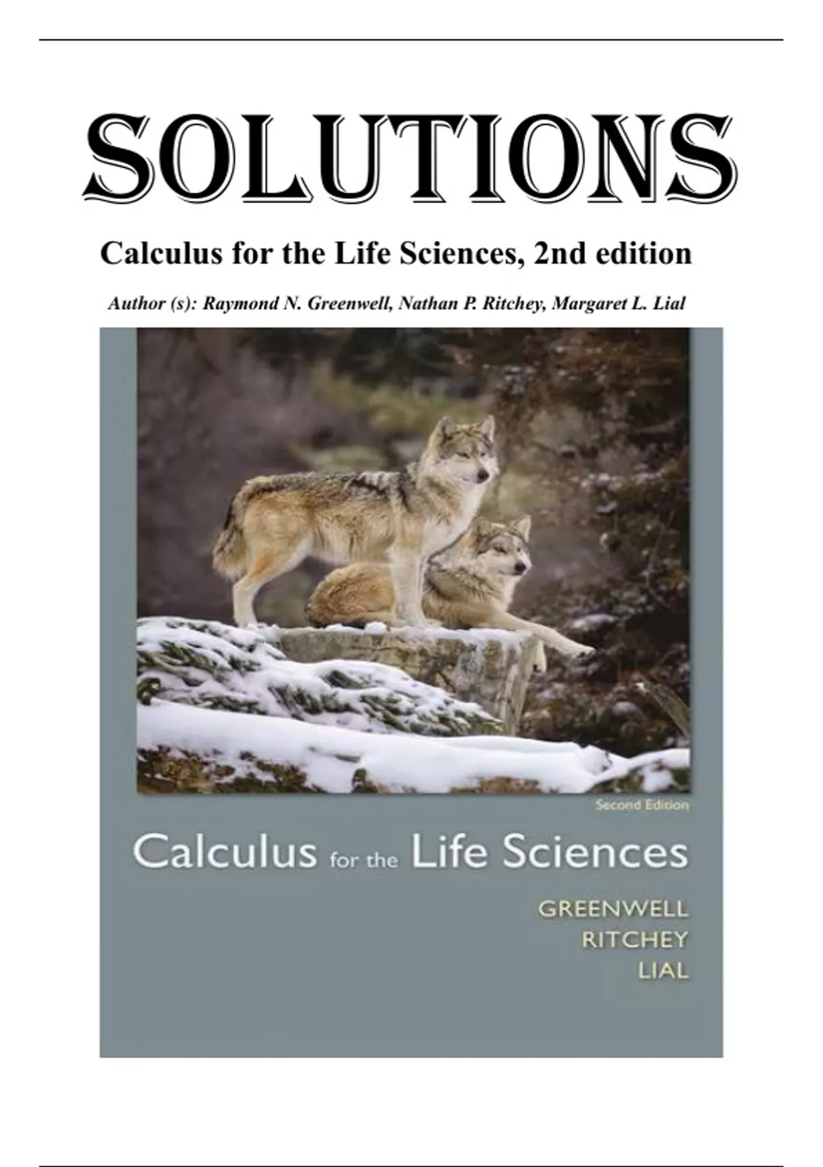 Calculus for the Life Sciences (2nd Edition, Greenwell, Ritchey & Lial) – Complete Solution Manual with Review Exercises and Applied Problems