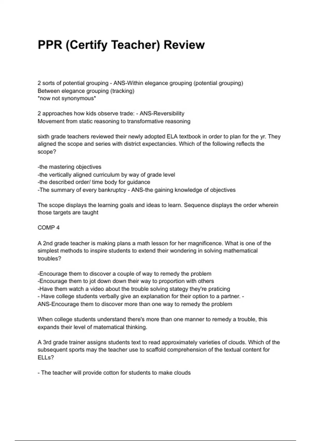 Which of the subsequent practices would maximum probably guide scholar getting to know? -