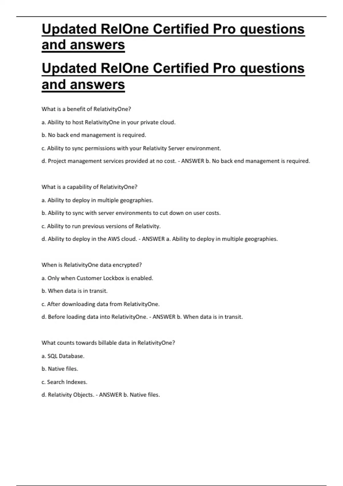 , Updated RelOne Certified Pro questions