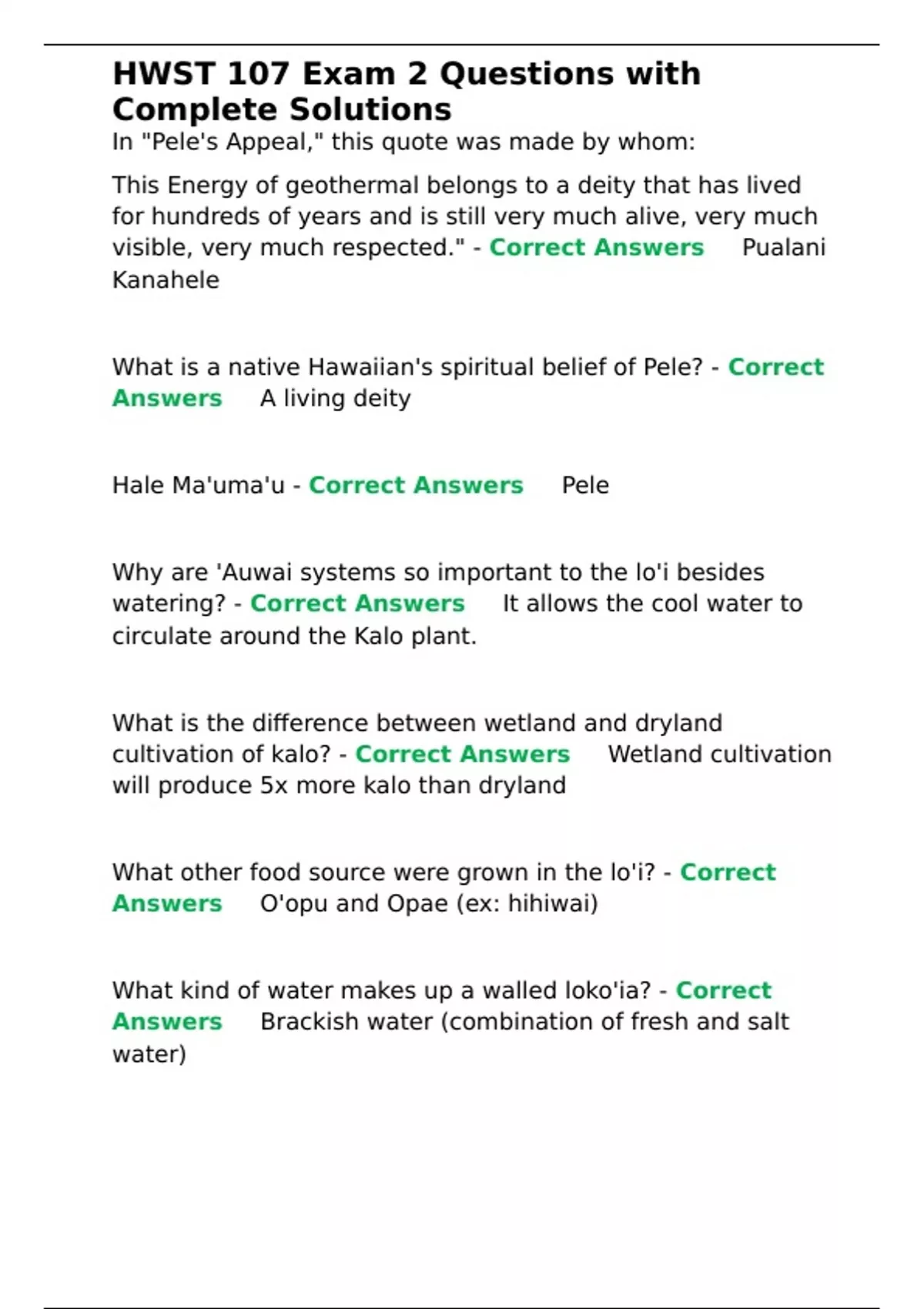 Hale Ma'uma'u - Correct Answers ✅Pele