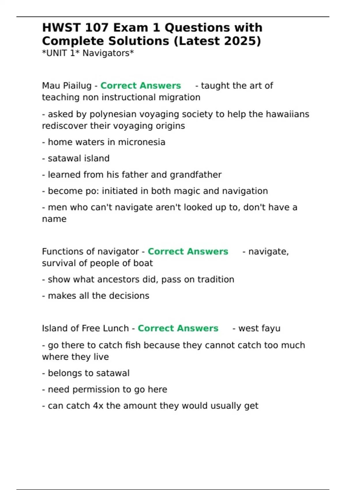 Points of the Polynesian triangle - Correct Answers ✅-