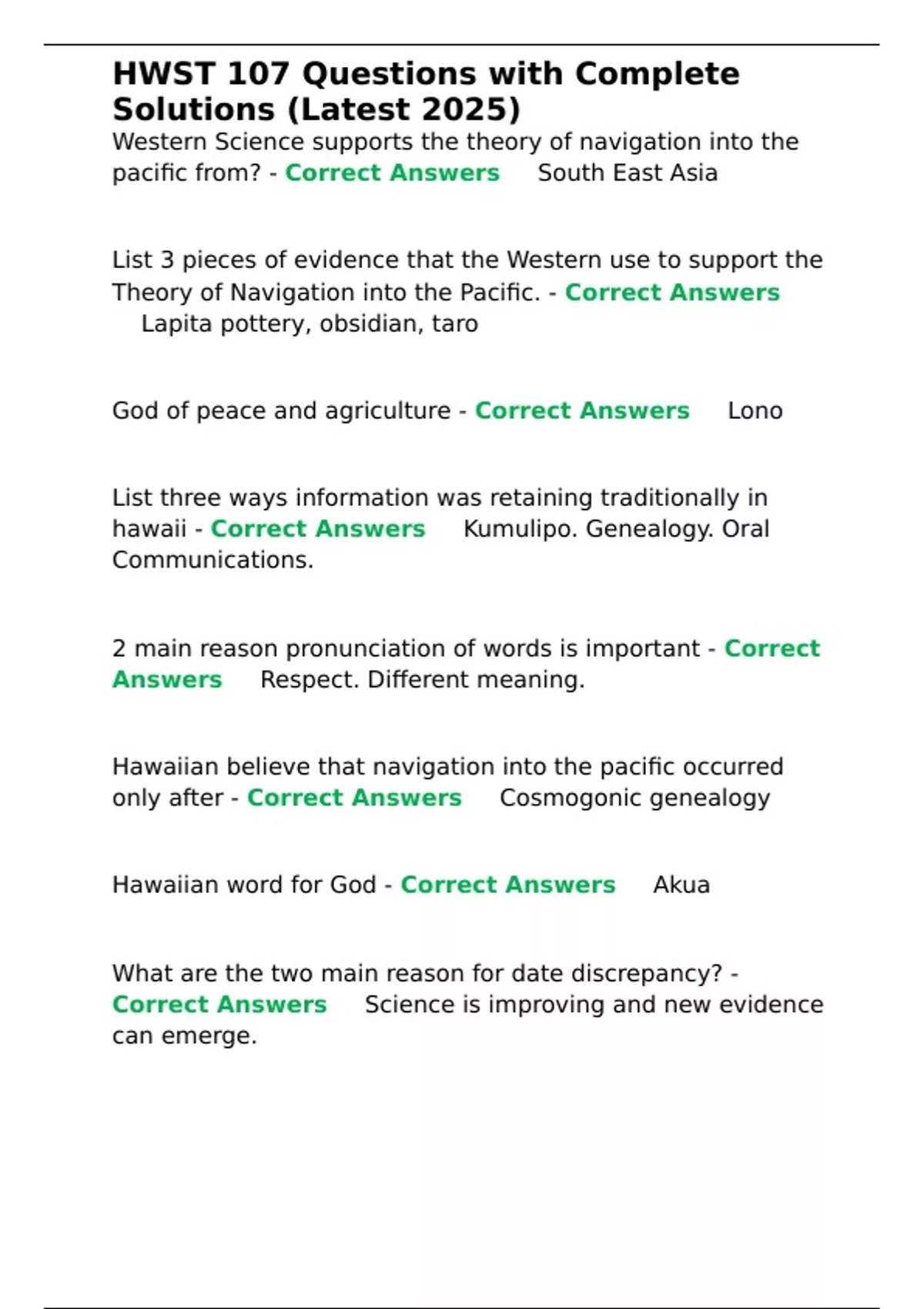 HWST 107 Questions with Complete Solutions (Latest 2025)