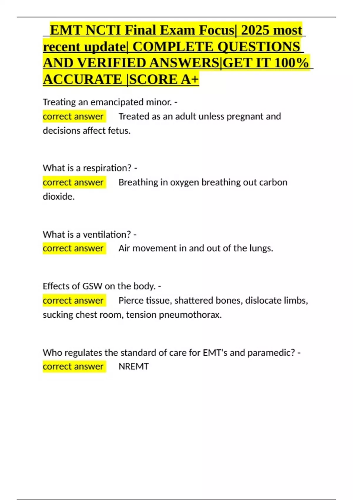 EMT NCTI Final Exam Focus 2025 most recent update COMPLETE QUESTIONS AND VERIFIED ANSWERS GET IT 100- ACCURATE SCORE A+.docx