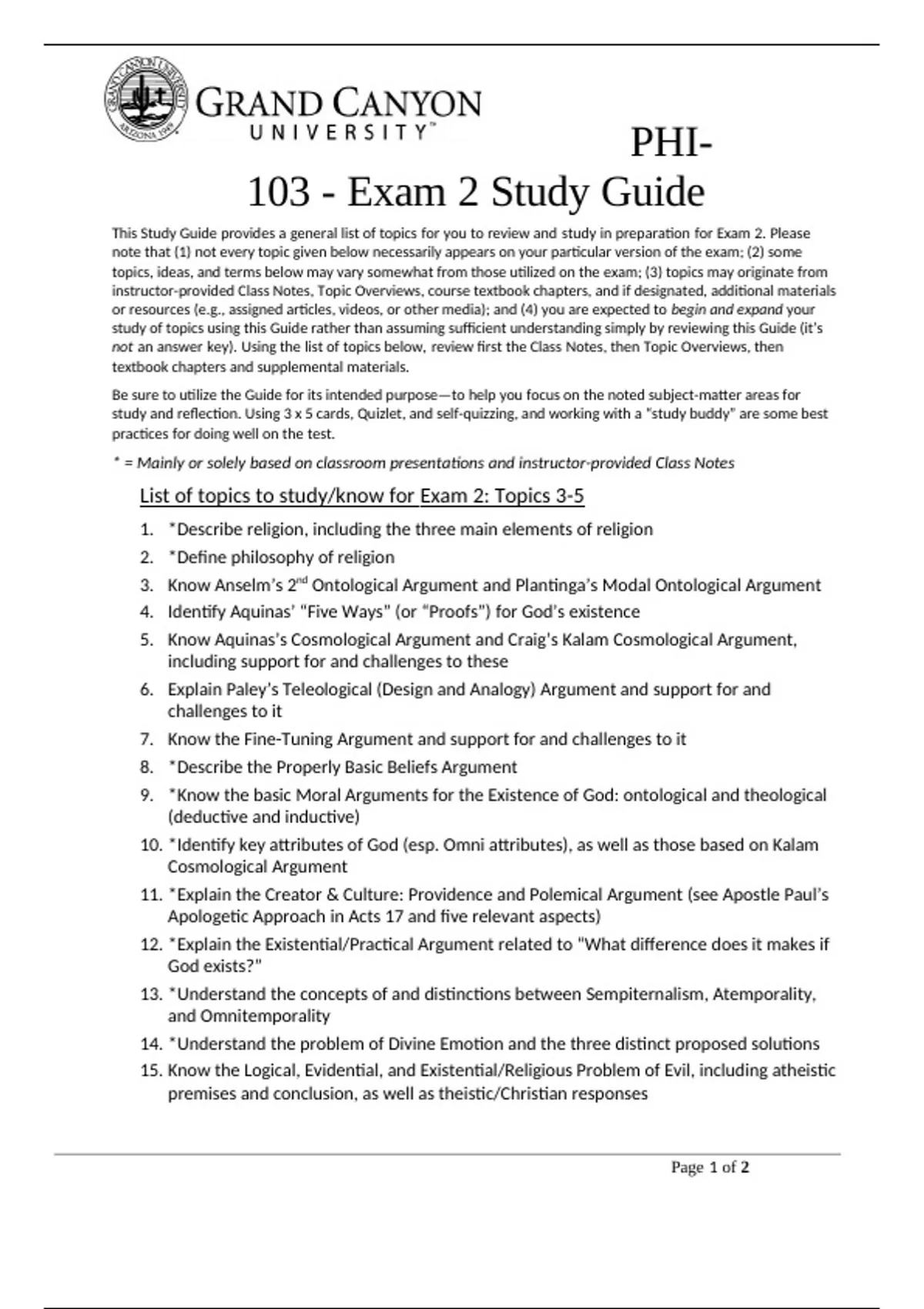 This Study Guide provides a general list of topics for you to review and study in preparation for Exam 2. Please
