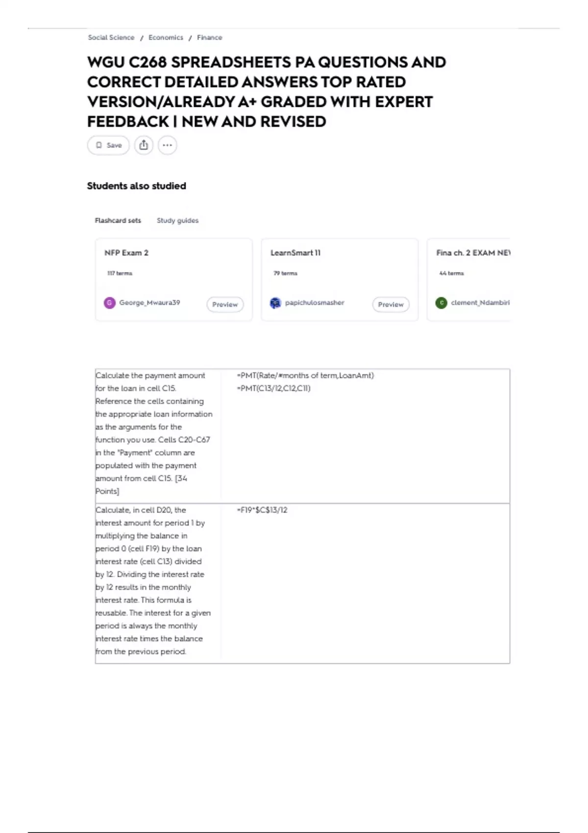 WGU C268 SPREADSHEETS PA QUESTIONS AND