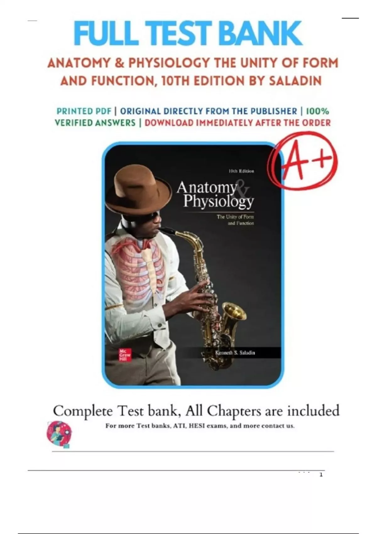 ,Test Bank Anatomy & Physiology: The Unity of Form and Function, 10th Edition by