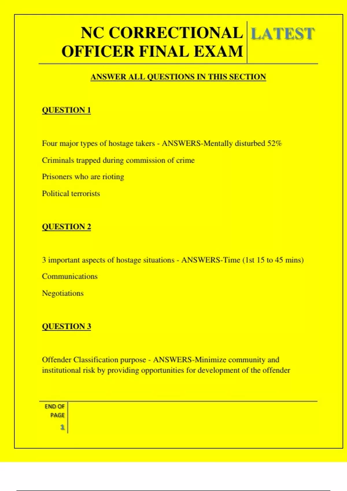 NC CORRECTIONAL OFFICER FINAL EXAM QUESTIONS AND ANSWERS 2025