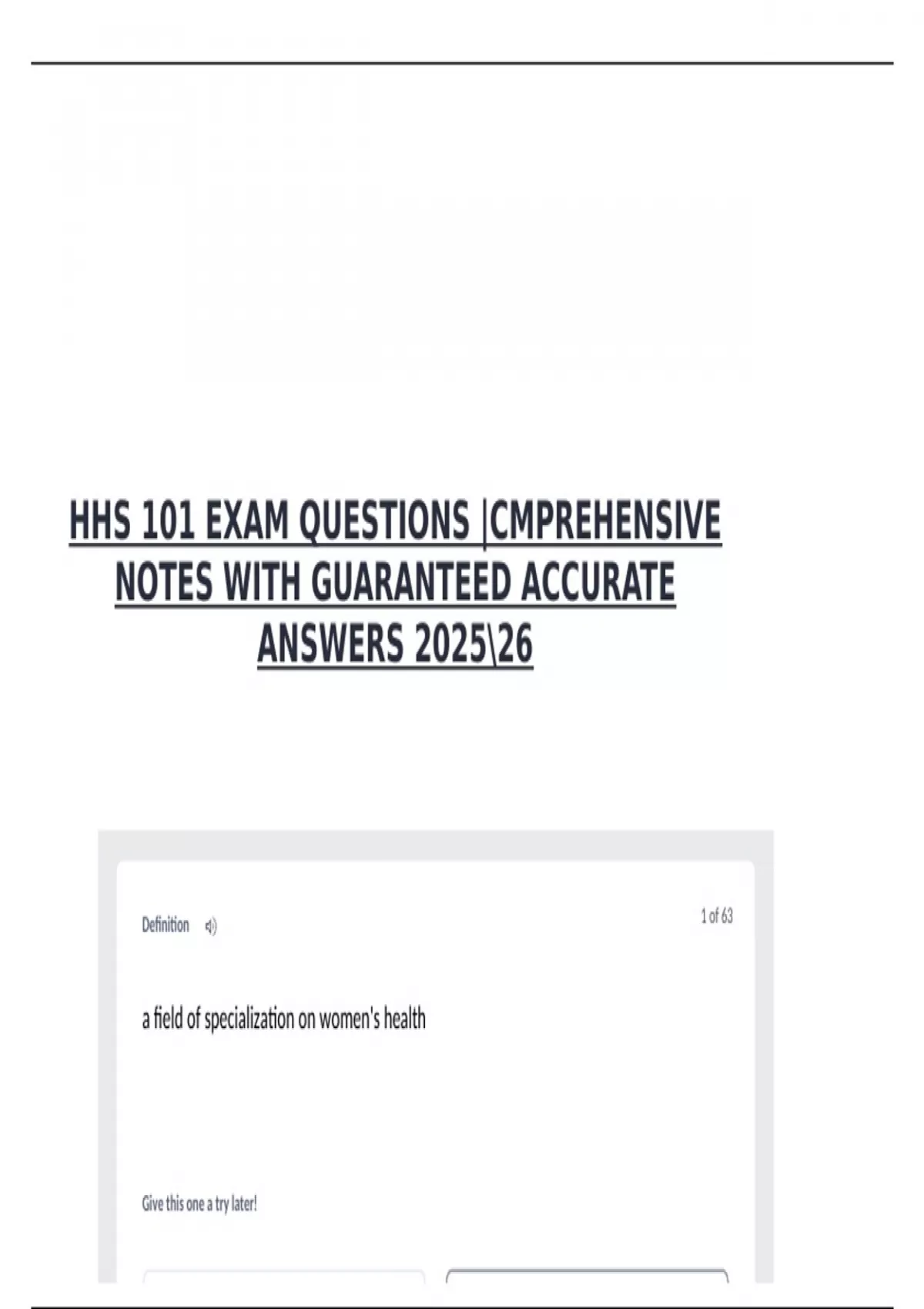 HHS 101 EXAM QUESTIONS |CMPREHENSIVE NOTES WITH GUARANTEED ACCURATE ANSWERS 202526