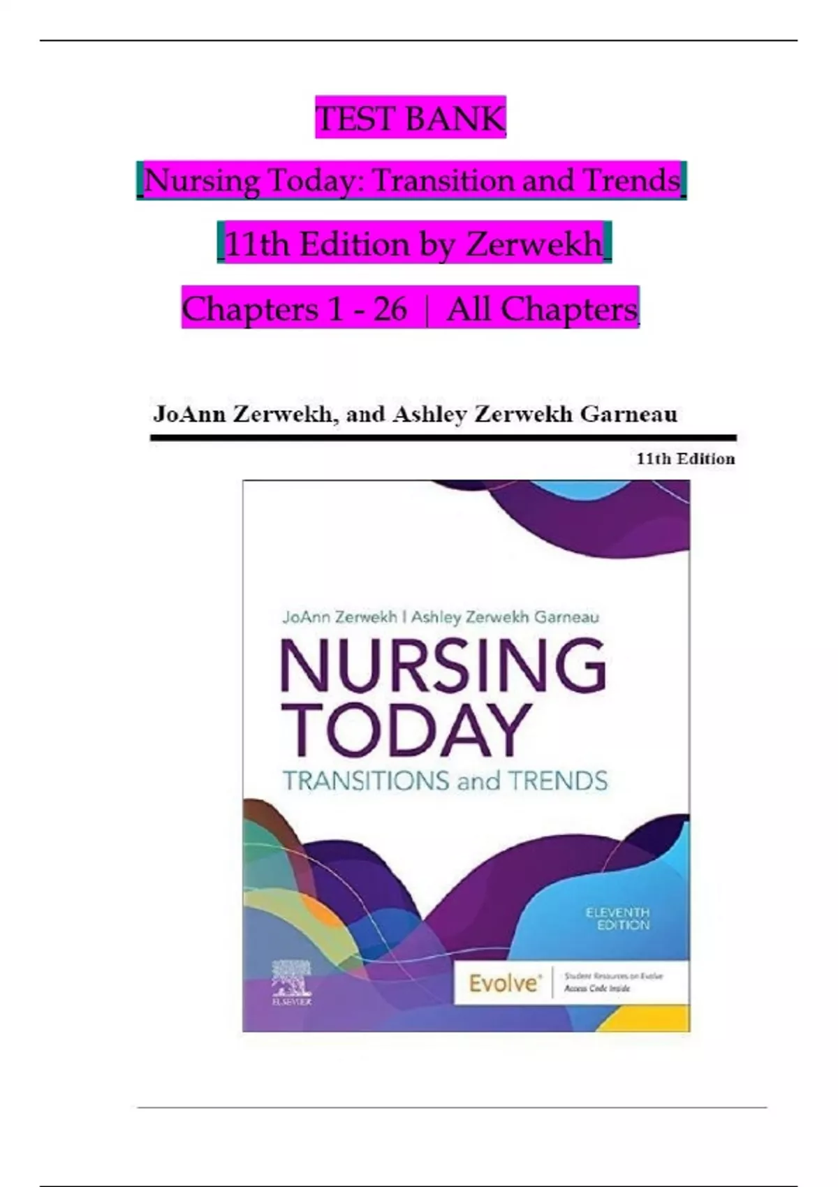 TEST BANK - Nursing Today: Transition and Trends, 11th Edition (Zerwekh) Chapters 1 - 26 | All Chapters