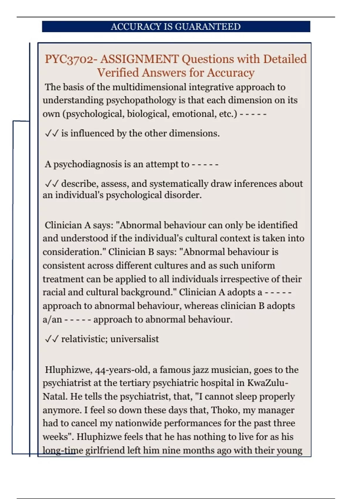 PYC3702- ASSIGNMENT Questions with Detailed Verified Answers for Accuracy