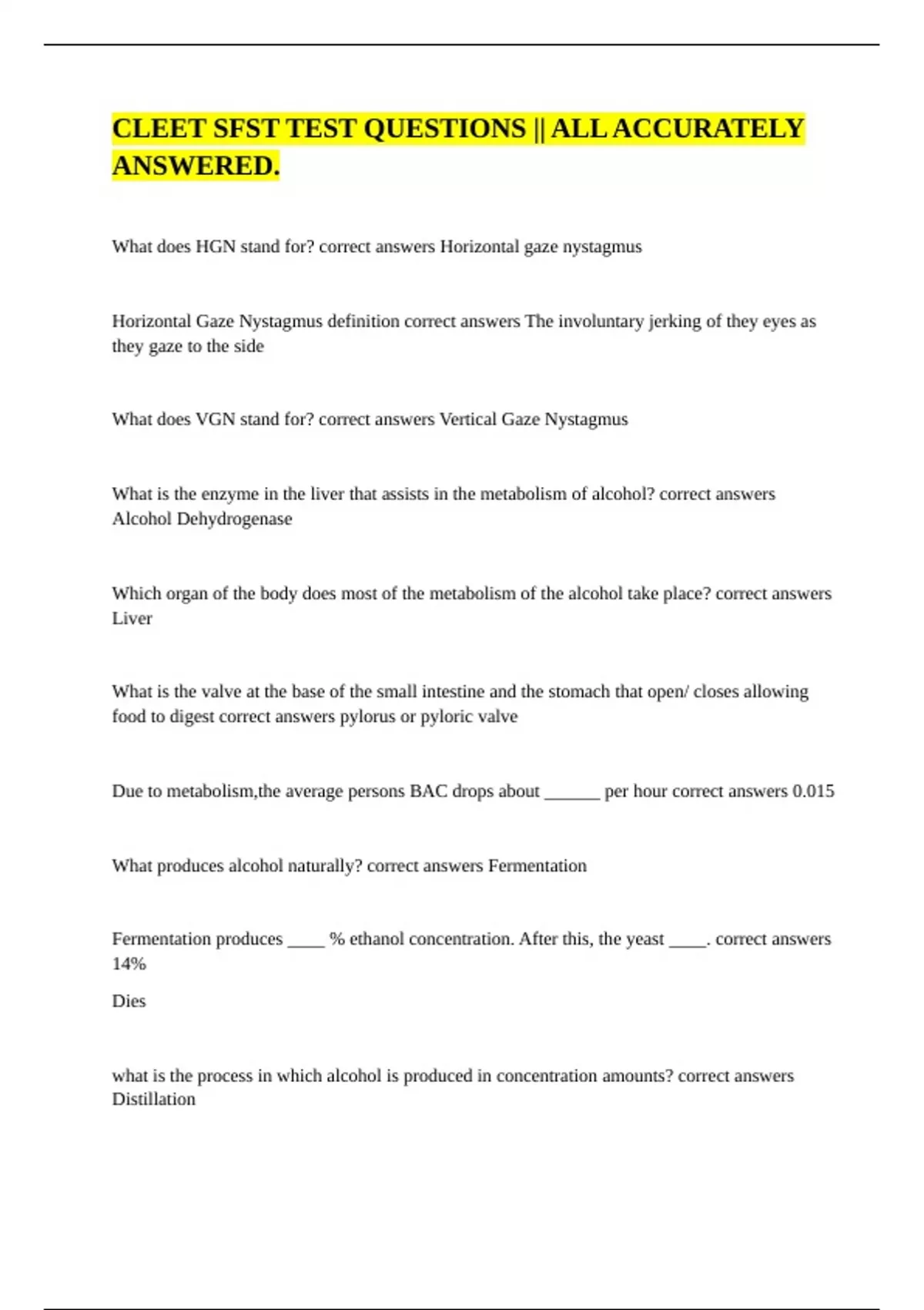 What does HGN stand for? correct answers Horizontal gaze nystagmus