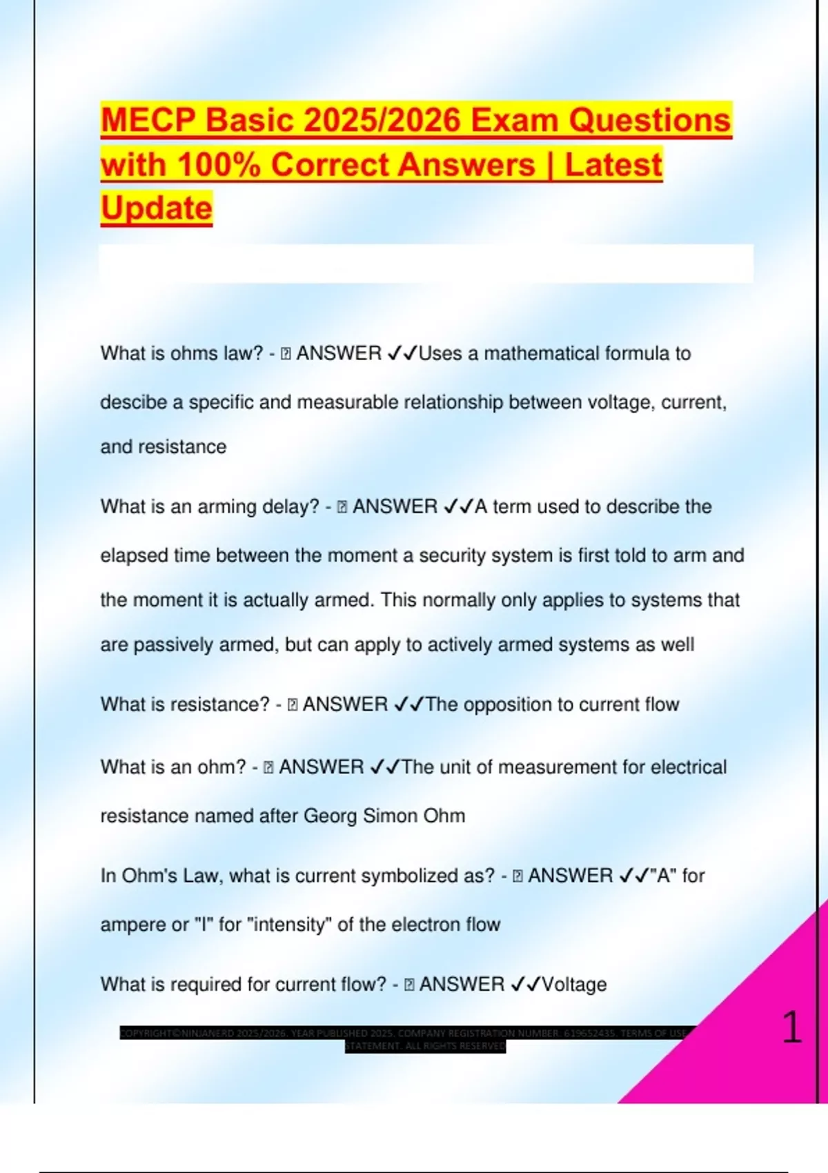 MECP Basic 2025/2026 Exam Questions with 100% Correct Answers | Latest Update