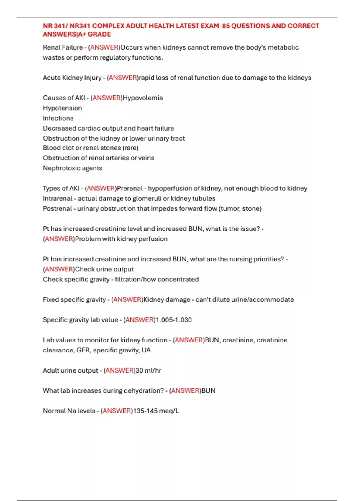 NR 341/ NR341 COMPLEX ADULT HEALTH LATEST EXAM 85 QUESTIONS AND CORRECT ANSWERS|A+ GRADE