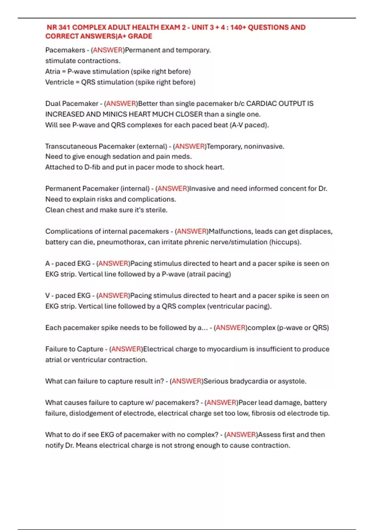 , NR 341 COMPLEX ADULT HEALTH EXAM 2 - UNIT 3 + 4 : 140+ QUESTIONS AND
