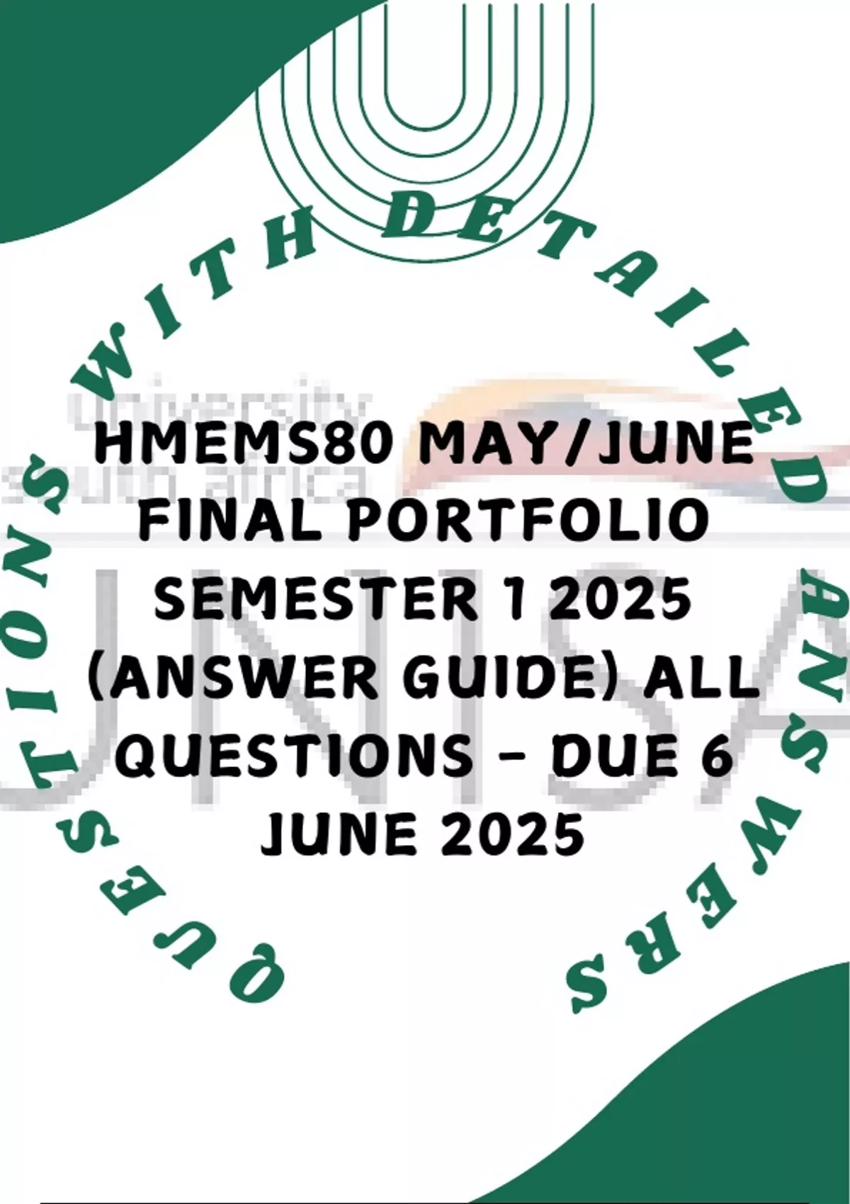 HMEMS80 MAY/JUNE FINAL PORTFOLIO Semester 1 2025 (ANSWER GUIDE) ALL QUESTIONS - DUE 6 June 2025 QUESTION 1 PART 1: Declaration of Authenticity I hereby declare that this research proposal is my own original work. All sources used in the preparation of this document have been properly cited and referenced in accordance with the Harvard referencing style. Any contributions from other authors, researchers, or previously published materials have been appropriately acknowledged. PART 2: Reflection 2.1 Reflection on Formative Assessment Feedback from previous assessments highlighted the need for a clearer research methodology and stronger justification for the chosen statistical tests. I have refined my approach by: • Ensuring alignment between research questions and data analysis methods. • Strengthening the literature review with recent studies on plagiarism interventions. • Clarifying ethical considerations in data collection. 2.2 Weekly Self-Reflections • Week 1: Identified key research gaps in academic integrity training effectiveness. • Week 2: Reviewed Turnitin-based plagiarism studies (Walker, 2021; Bretag, 2019). • Week 3: Finalized research design (correlational quantitative approach). • Week 4: Developed a structured ethics compliance plan.