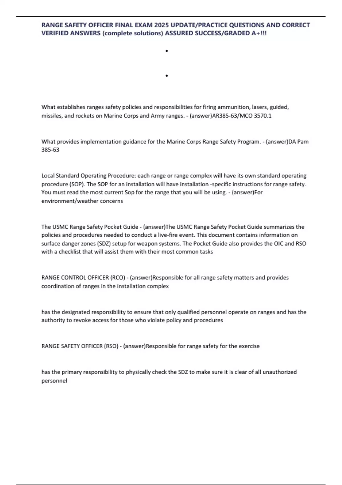 RANGE SAFETY OFFICER FINAL EXAM 2025 UPDATE/PRACTICE QUESTIONS AND CORRECT