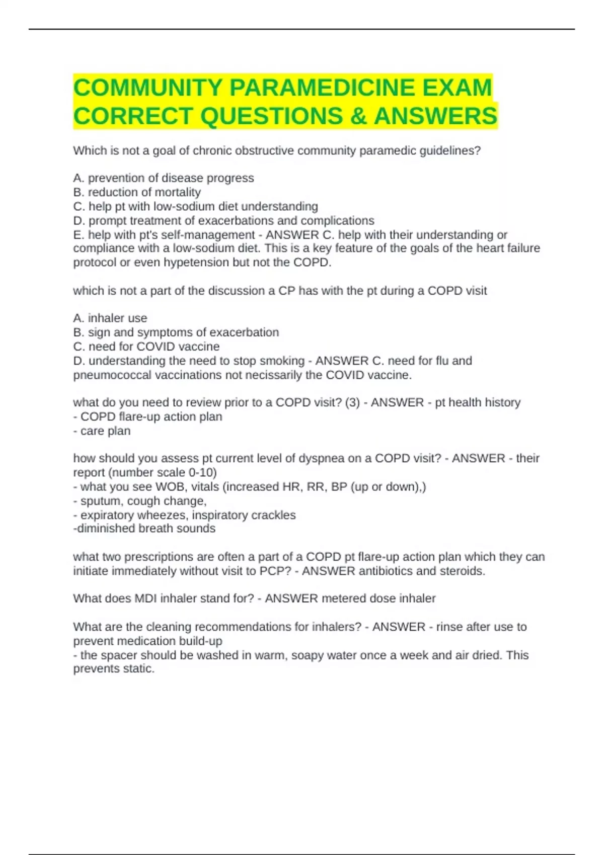 Which is not a goal of chronic obstructive community paramedic guidelines?