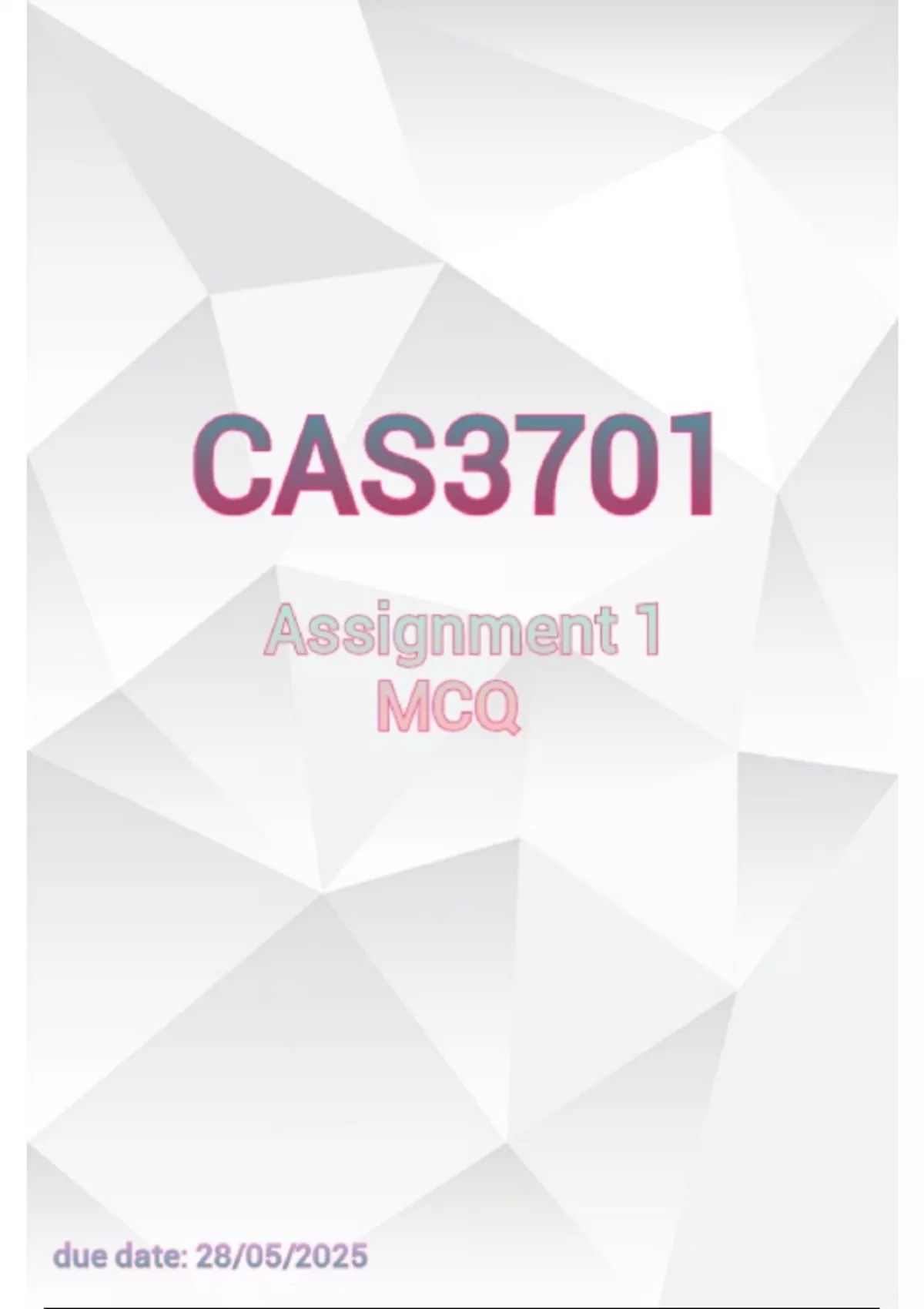 CAS3701 ASSIGNMENT 1 (MCQ) DUE DATE: 28/05/2025