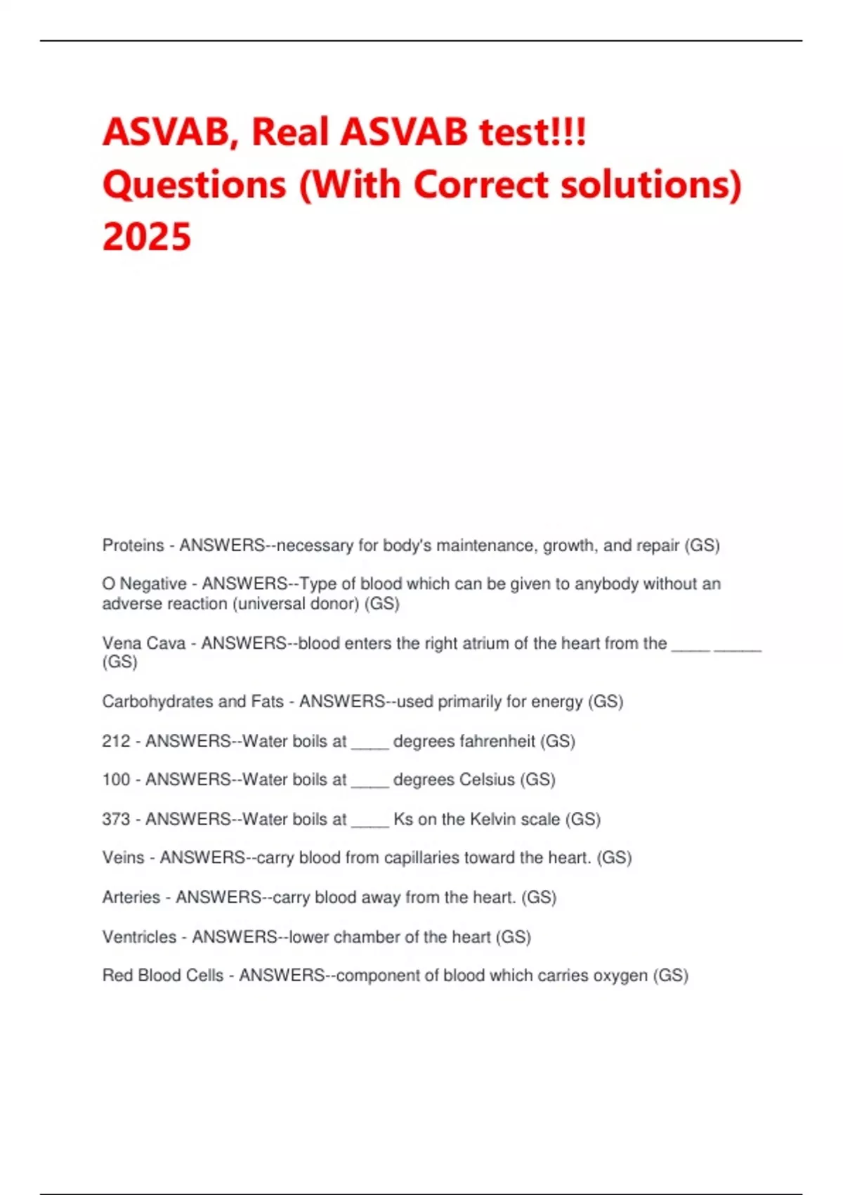 Arteries - ANSWERS--carry blood away from the heart. (GS)