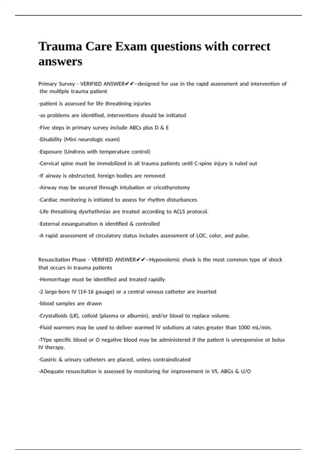 Prehospital |Resuscitation |- |VERIFIED |ANSWER✔✔--goal |is |immediates |stabilization |& |transportation