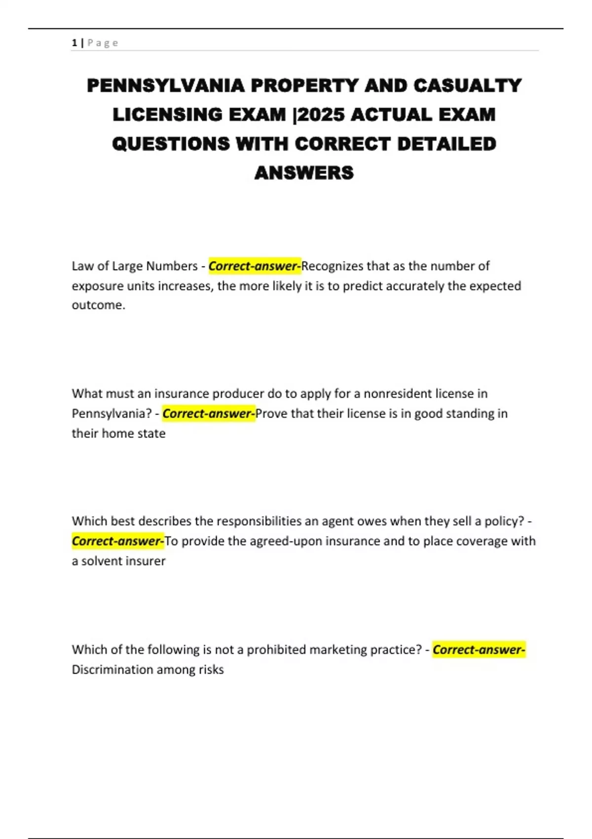 PENNSYLVANIA PROPERTY AND CASUALTY LICENSING EXAM |2025 ACTUAL EXAM QUESTIONS WITH CORRECT DETAILED ANSWERS