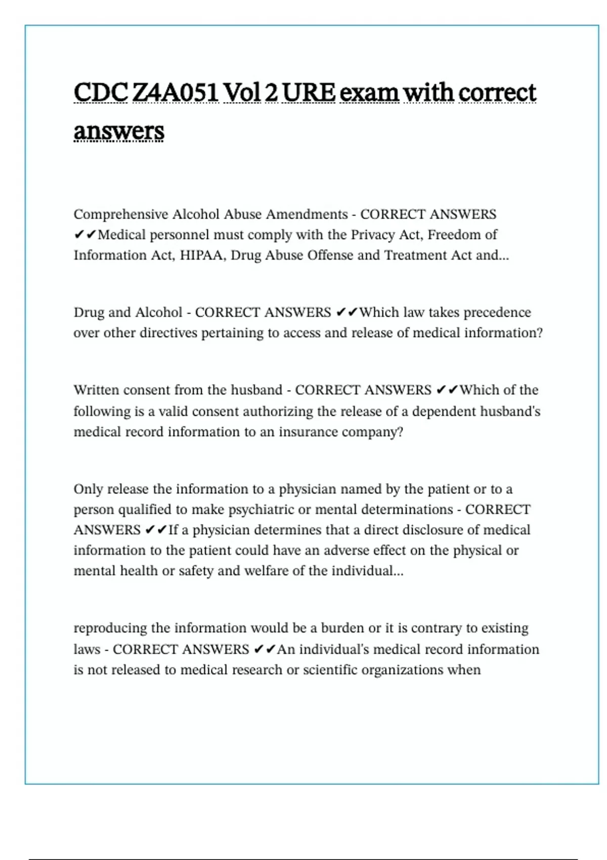 ANSWERS ✔✔If a physician determines that a direct disclosure of medical