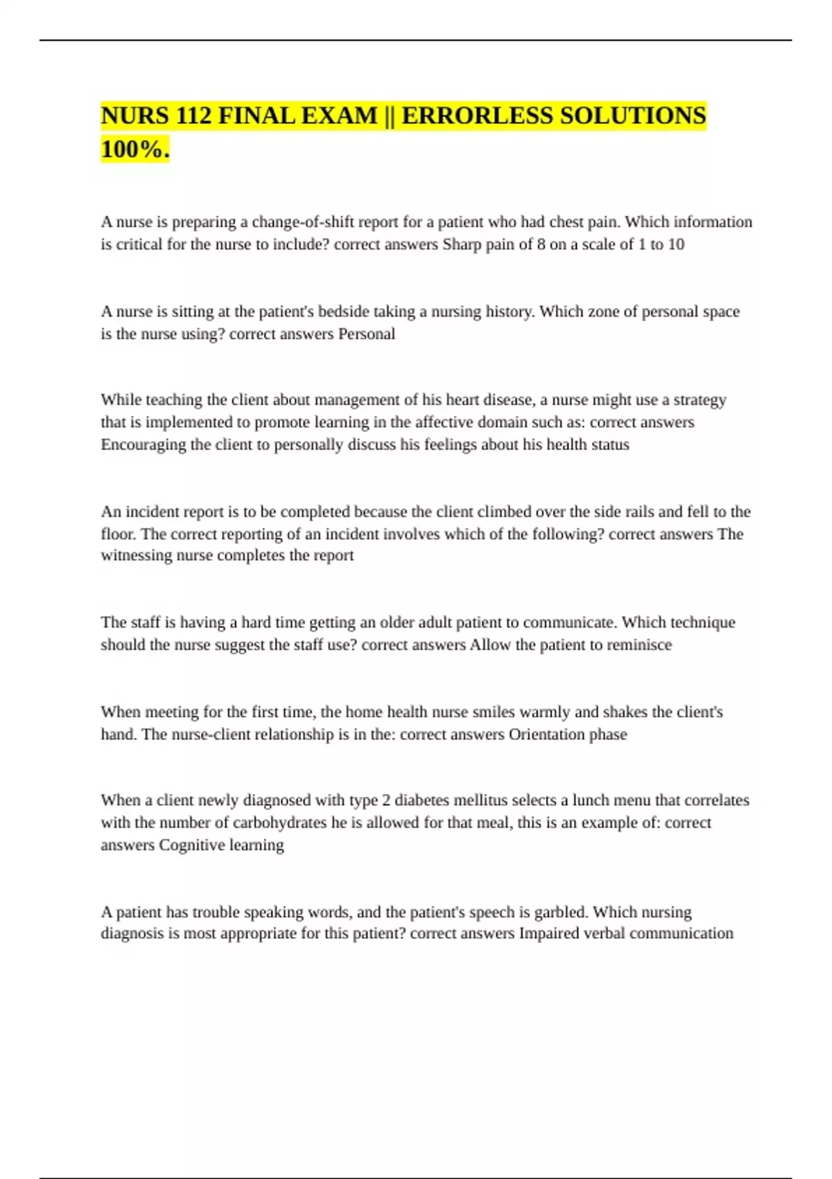 is critical for the nurse to include? correct answers Sharp pain of 8 on a scale of 1 to 10