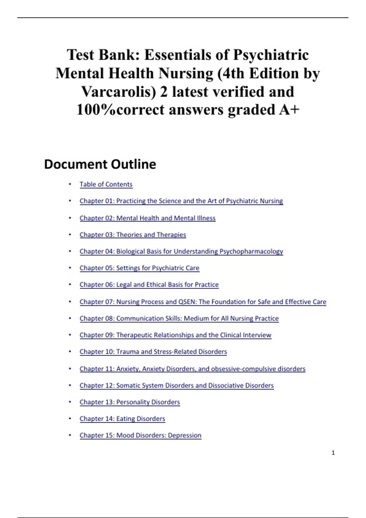 , Test Bank: Essentials of Psychiatric Mental Health Nursing (4th Edition by Varcarolis)