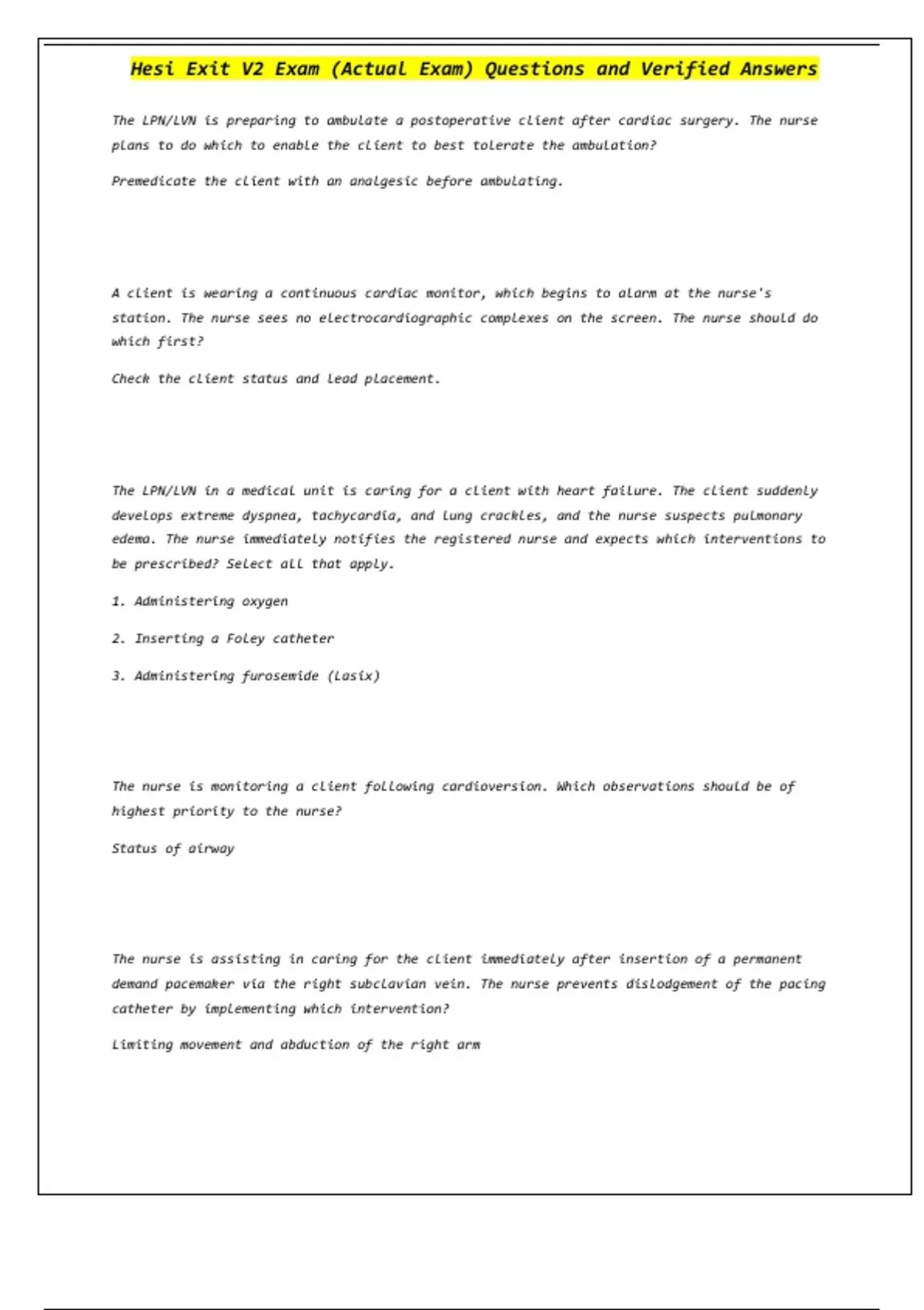 , Hesi Exit V2 Exam (Actual Exam) Questions and Verified Answers