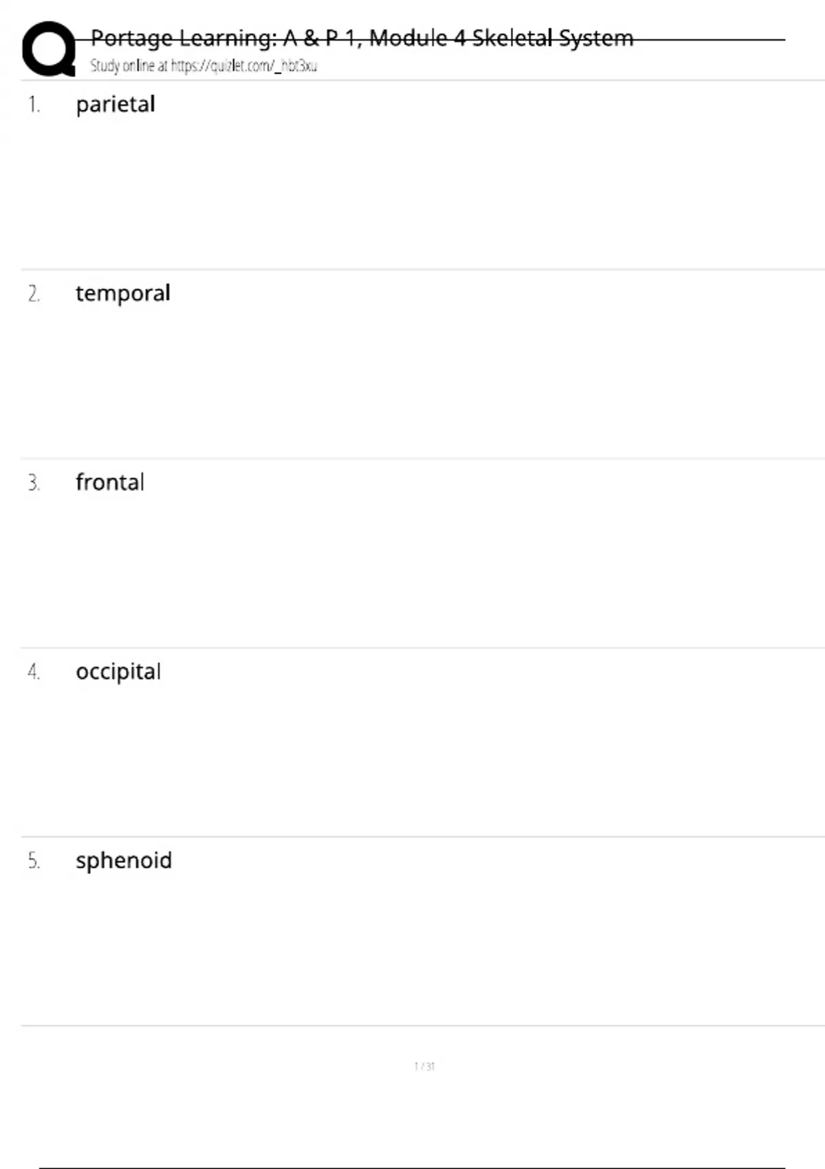 A&P 1 101 Module 4 (GRADED A+) Skeletal system TEST- Portage Learning