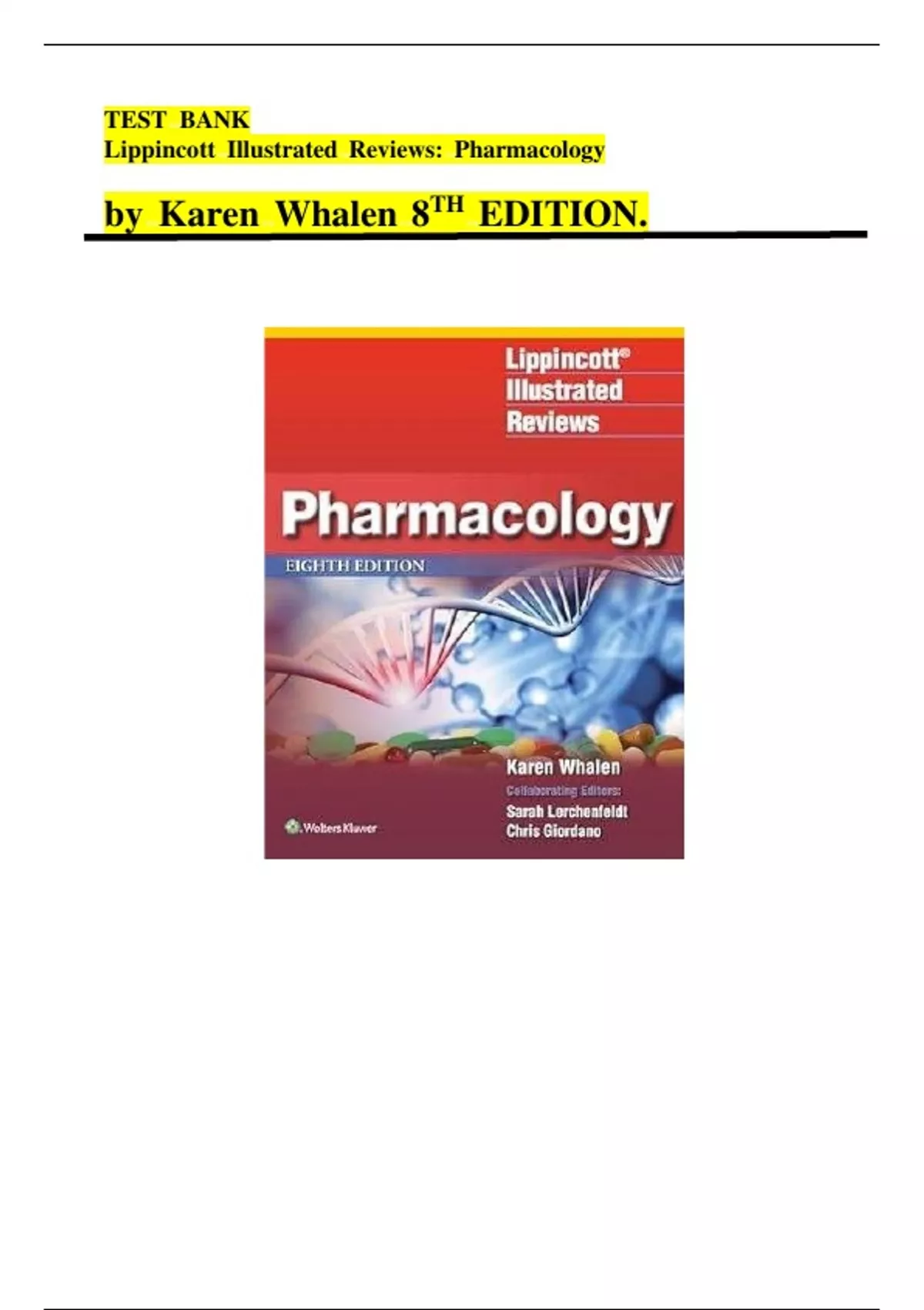 , Pharmacology @stIllustrated @stReviews @st8th @stEdition @stWhalen @stTest @stBank