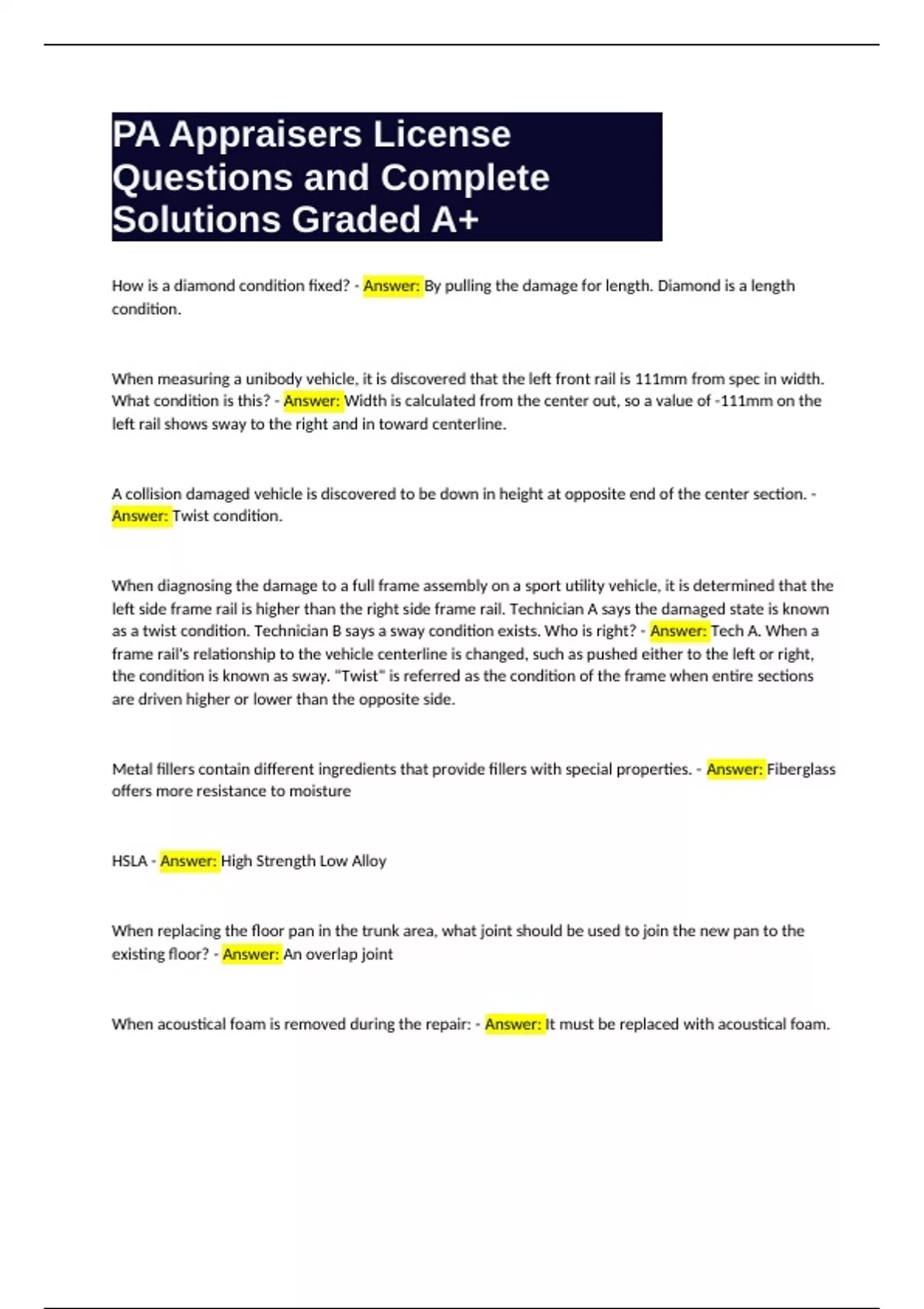 PA Appraisers License Questions and Complete Solutions Graded A+