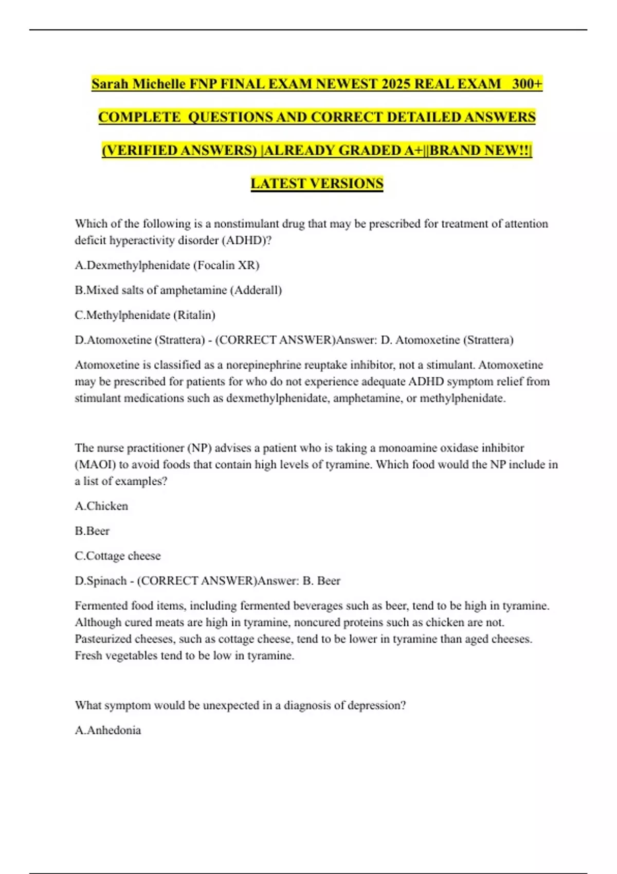 Sarah Michelle FNP FINAL EXAM NEWEST 2025 REAL EXAM 300+ COMPLETE QUESTIONS AND CORRECT DETAILED ANSWERS (VERIFIED ANSWERS) |ALREADY GRADED A+||BRAND NEW!!| LATEST VERSIONS