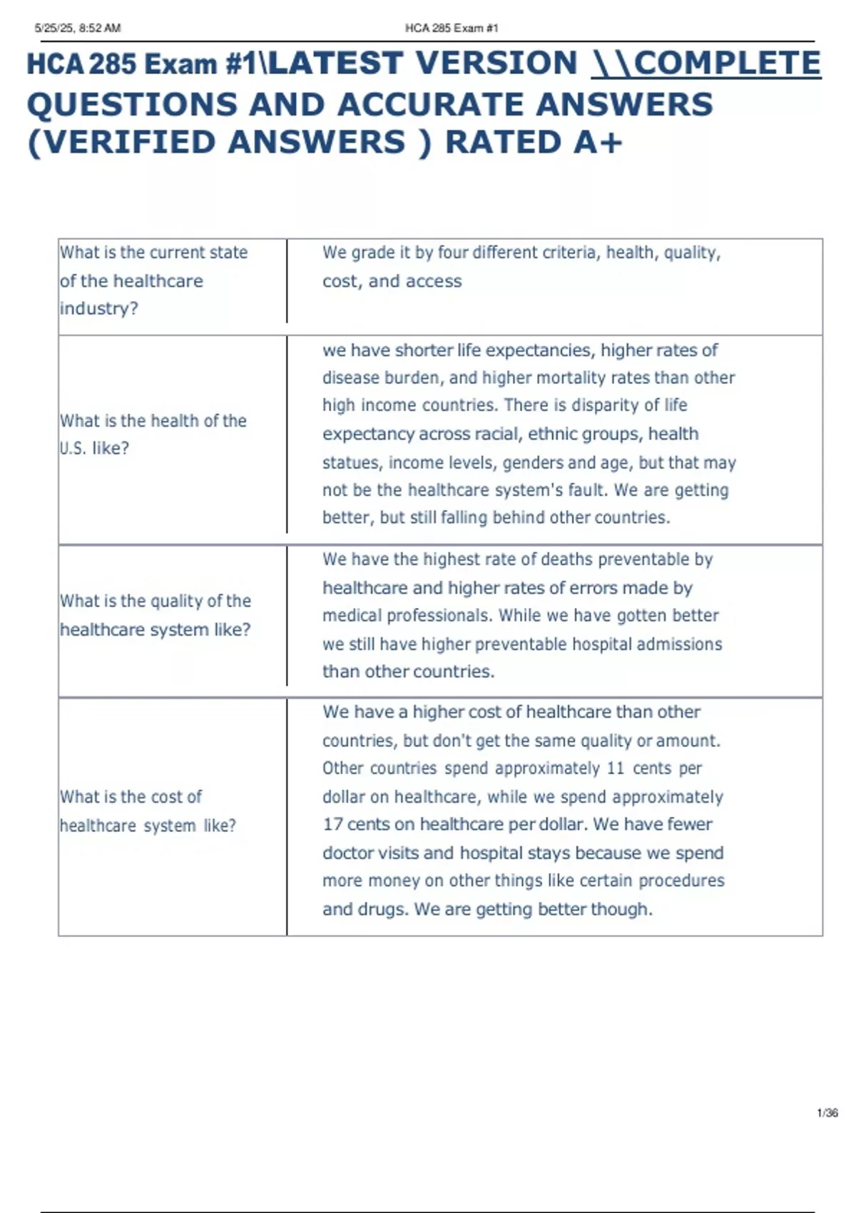 HCA 285 Exam #1\LATEST VERSION \\COMPLETE