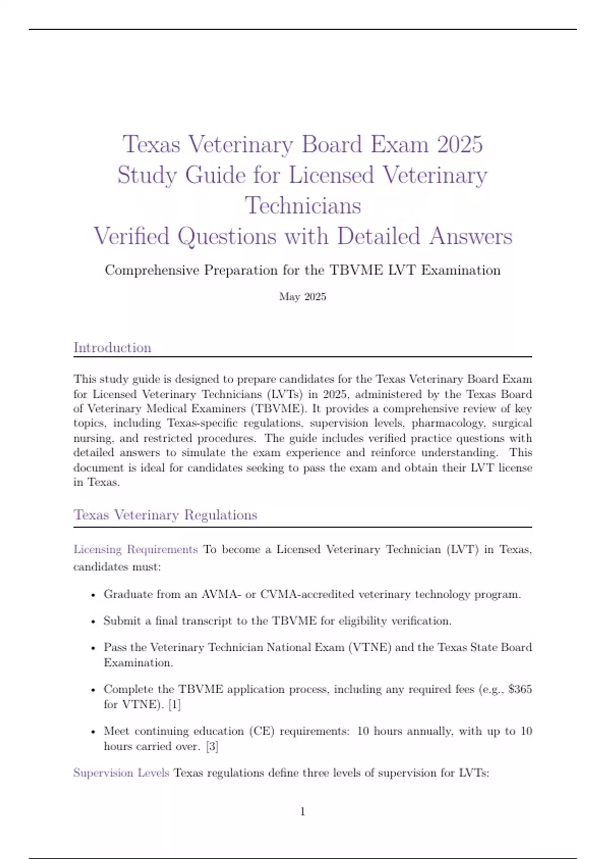 This study guide is designed to prepare candidates for the Texas Veterinary Board Exam