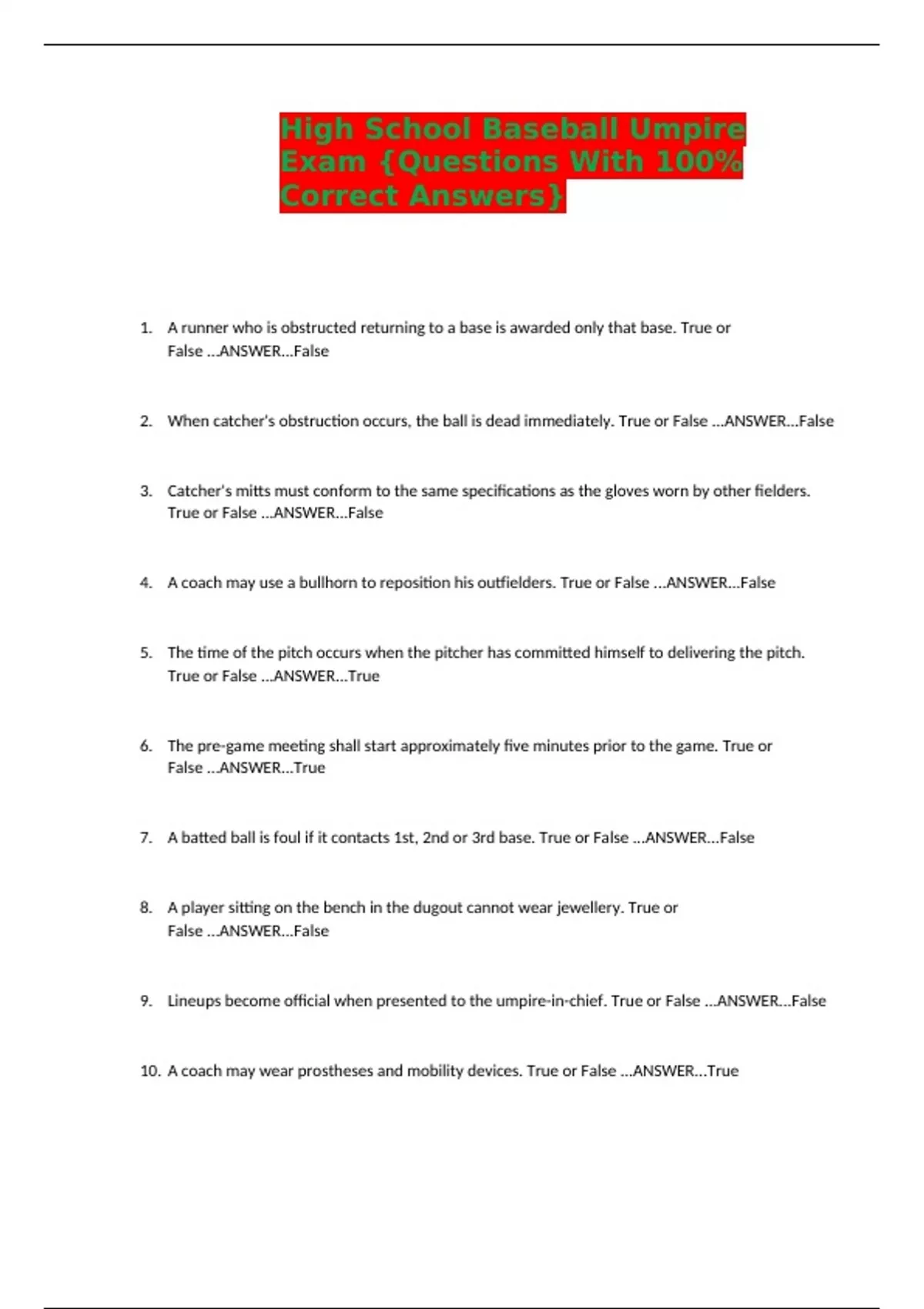 9. Lineups become official when presented to the umpire-in-chief. True or False ...ANSWER...False