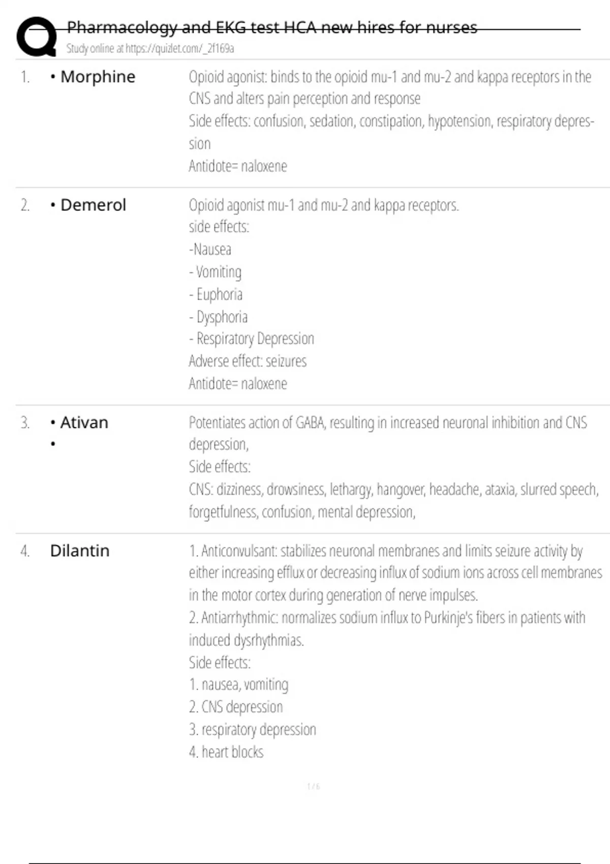 1. • Morphine Opioid agonist: binds to the opioid mu-1 and mu-2 and kappa receptors in the
