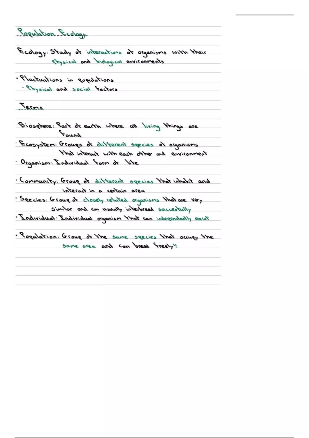 Comprehensive summary of IEB population ecology notes Covers the following: - Terms - Pop. size and environmental resistance - Dependant and independant factors - Sampling method - Pop. relationships - Ecological succession - Social organization