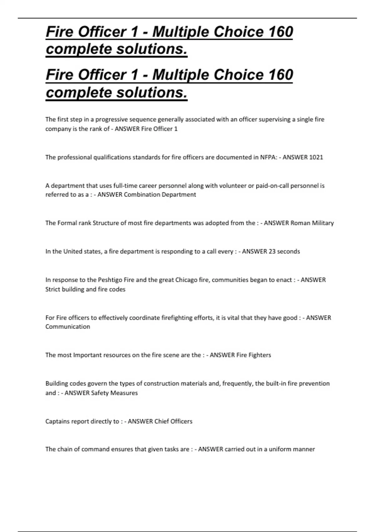 ,Fire Officer 1 - Multiple Choice 160