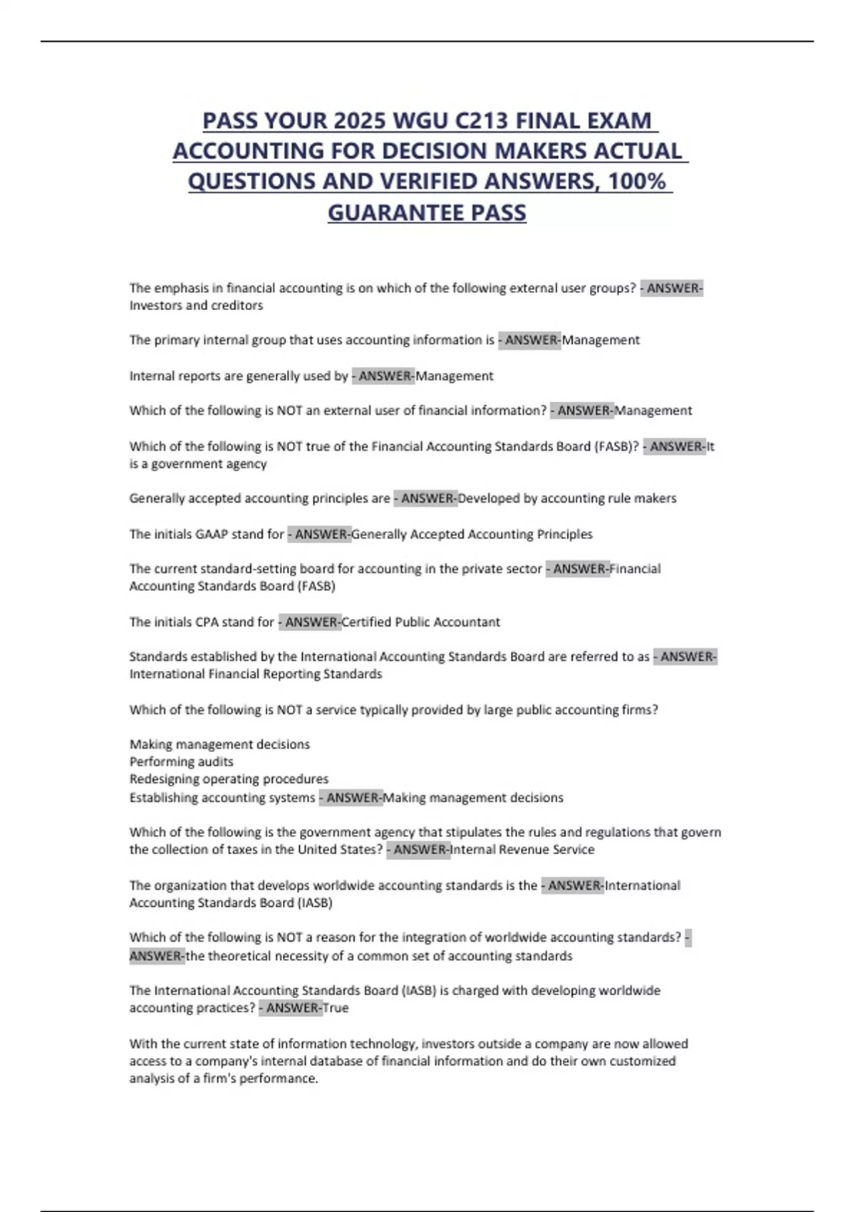 PASS YOUR 2025 WGU C213 FINAL EXAM