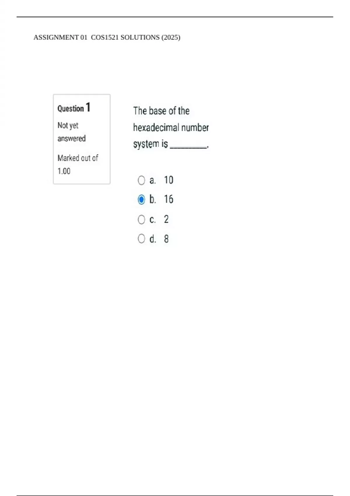 , ASSIGNMENT 01 COS1521 SOLUTIONS (2025)