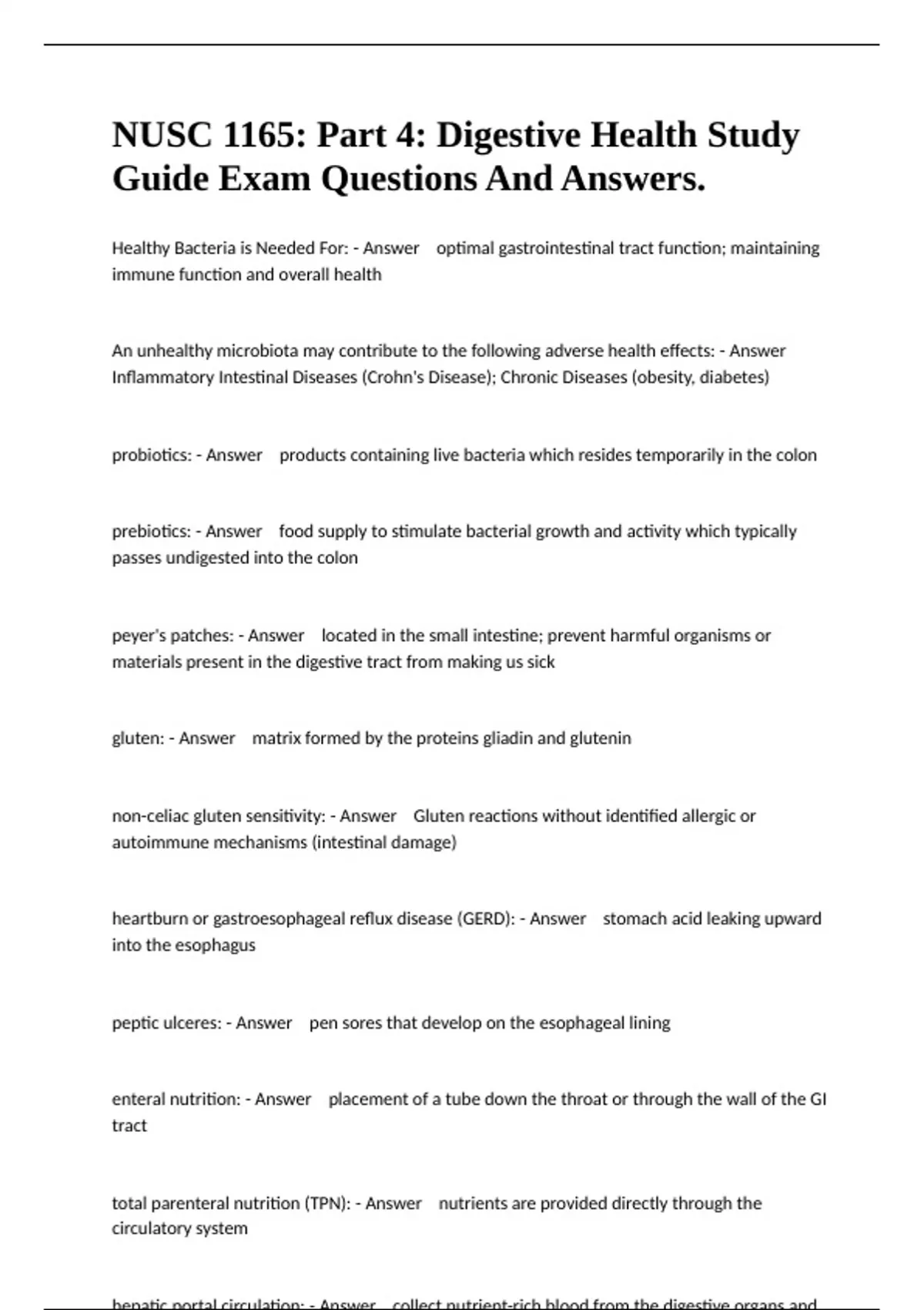 Healthy Bacteria is Needed For: - Answer optimal gastrointestinal tract function; maintaining