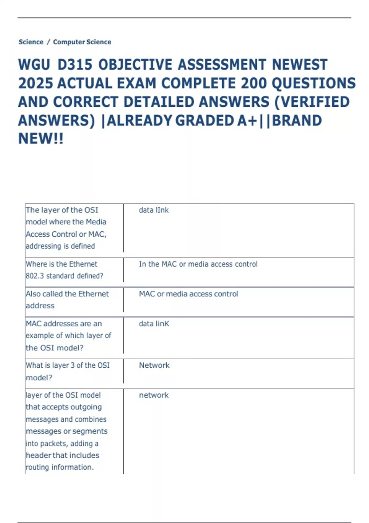 WGU D315 OBJECTIVE ASSESSMENT NEWEST 2025 ACTUAL EXAM COMPLETE 200 QUESTIONS AND CORRECT DETAILED ANSWERS (VERIFIED ANSWERS) |ALREADY GRADED A+||BRAND NEW!! WGU D315 OBJECTIVE ASSESSMENT NEWEST 2025 ACTUAL EXAM COMPLETE 200 QUESTIONS AND CORRECT DETAILED ANSWERS (VERIFIED ANSWERS) |ALREADY GRADED A+||BRAND NEW!! WGU D315 OBJECTIVE ASSESSMENT NEWEST 2025 ACTUAL EXAM COMPLETE 200 QUESTIONS AND CORRECT DETAILED ANSWERS (VERIFIED ANSWERS) |ALREADY GRADED A+||BRAND NEW!! WGU D315 OBJECTIVE ASSESSMENT NEWEST 2025 ACTUAL EXAM COMPLETE 200 QUESTIONS AND CORRECT DETAILED ANSWERS (VERIFIED ANSWERS) |ALREADY GRADED A+||BRAND NEW!! WGU D315 OBJECTIVE ASSESSMENT NEWEST 2025 ACTUAL EXAM COMPLETE 200 QUESTIONS AND CORRECT DETAILED ANSWERS (VERIFIED ANSWERS) |ALREADY GRADED A+||BRAND NEW!! WGU D315 OBJECTIVE ASSESSMENT NEWEST 2025 ACTUAL EXAM COMPLETE 200 QUESTIONS AND CORRECT DETAILED ANSWERS (VERIFIED ANSWERS) |ALREADY GRADED A+||BRAND NEW!! WGU D315 OBJECTIVE ASSESSMENT NEWEST 2025 ACTUAL EXAM COMPLETE 200 QUESTIONS AND CORRECT DETAILED ANSWERS (VERIFIED ANSWERS) |ALREADY GRADED A+||BRAND NEW!! WGU D315 OBJECTIVE ASSESSMENT NEWEST 2025 ACTUAL EXAM COMPLETE 200 QUESTIONS AND CORRECT DETAILED ANSWERS (VERIFIED ANSWERS) |ALREADY GRADED A+||BRAND NEW!! WGU D315 OBJECTIVE ASSESSMENT NEWEST 2025 ACTUAL EXAM COMPLETE 200 QUESTIONS AND CORRECT DETAILED ANSWERS (VERIFIED ANSWERS) |ALREADY GRADED A+||BRAND NEW!! WGU D315 OBJECTIVE ASSESSMENT NEWEST 2025 ACTUAL EXAM COMPLETE 200 QUESTIONS AND CORRECT DETAILED ANSWERS (VERIFIED ANSWERS) |ALREADY GRADED A+||BRAND NEW!! WGU D315 OBJECTIVE ASSESSMENT NEWEST 2025 ACTUAL EXAM COMPLETE 200 QUESTIONS AND CORRECT DETAILED ANSWERS (VERIFIED ANSWERS) |ALREADY GRADED A+||BRAND NEW!! WGU D315 OBJECTIVE ASSESSMENT NEWEST 2025 ACTUAL EXAM COMPLETE 200 QUESTIONS AND CORRECT DETAILED ANSWERS (VERIFIED ANSWERS) |ALREADY GRADED A+||BRAND NEW!!