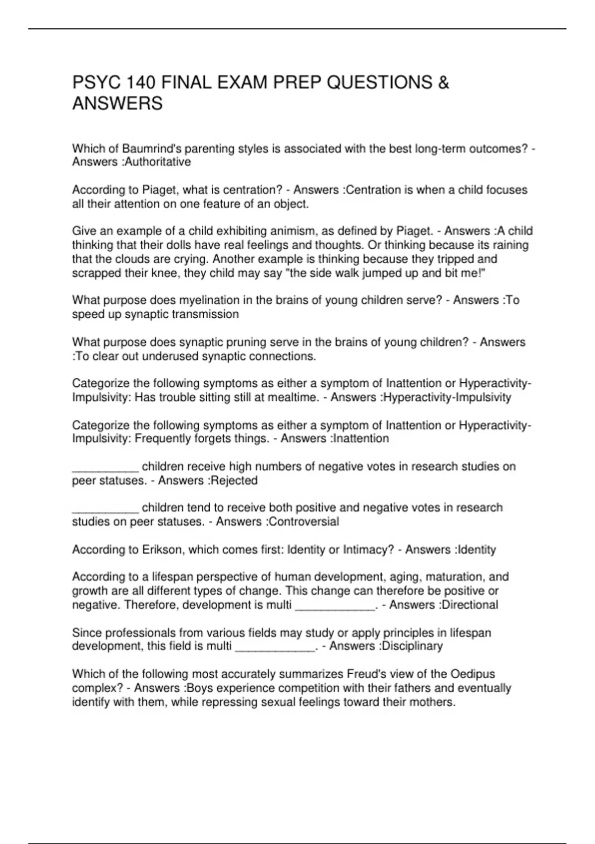 PSYC 140 FINAL EXAM PREP QUESTIONS &
