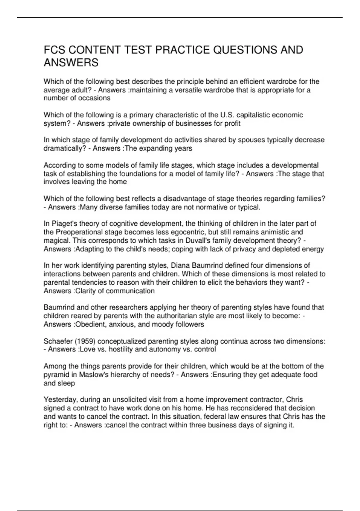 FCS CONTENT TEST PRACTICE QUESTIONS AND