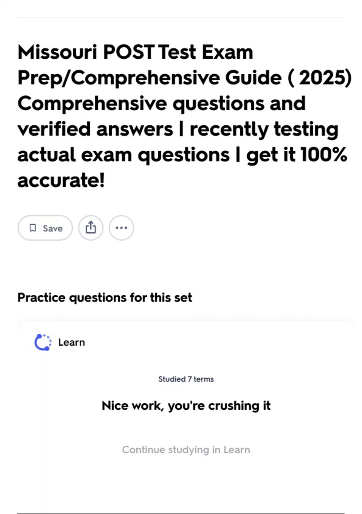 Continue studying in Learn