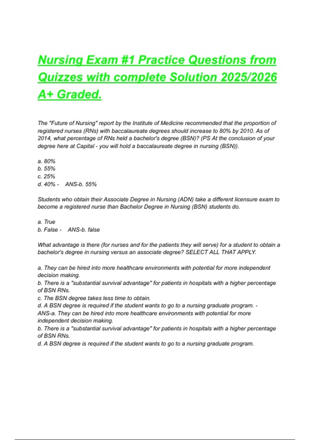 Nursing Exam #1 Practice Questions from Quizzes with complete Solution 2025/2026 A+ Graded.